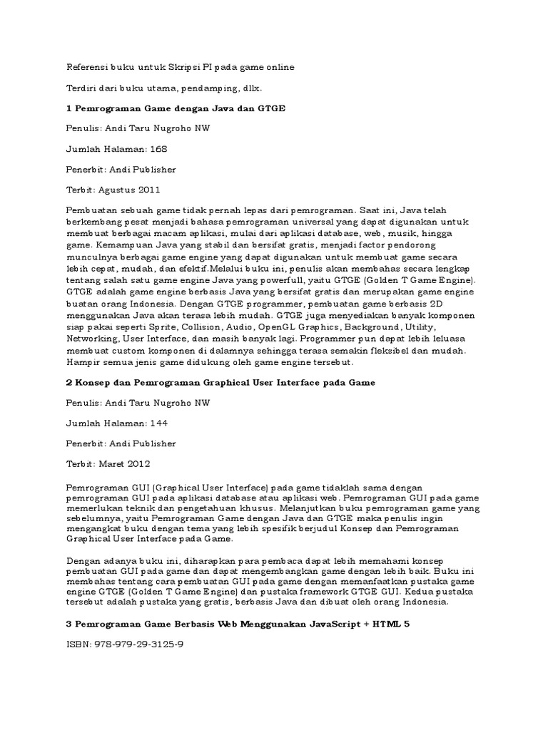 Referensi Buku Untuk Skripsi PI Pada Game Online